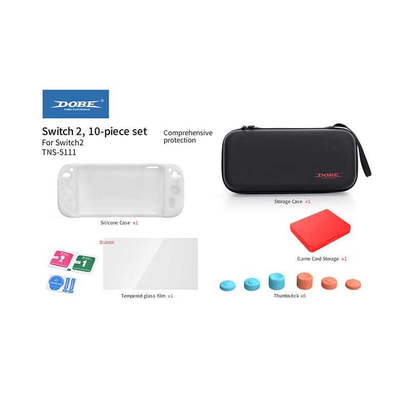 کیت 10 کاره نینتندو سوییچ 2 برند Dobe مدل TNS-5111، شامل تمام لوازم جانبی محافظتی کنسول شما میشود.