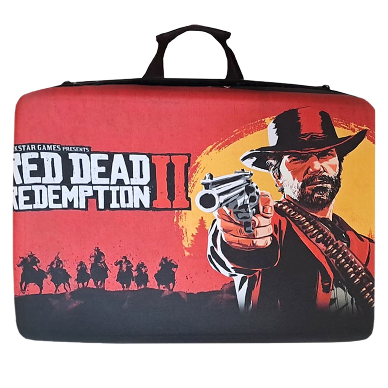 کیف طرح سفری چمدانی کنسول بازی پلی استیشن 5 با طرح جذاب red dead، راه حلی ایدهآل برای حمل و نقل امن کنسول شما در سفرها و جابجاییها است.
