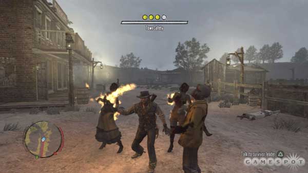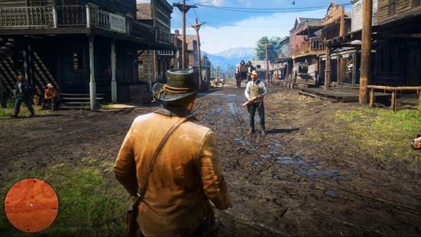 The game is played from a third-person perspective in an open world environment, allowing the player to interact with the game world at their leisure. The player can travel the virtual world, a fictionalized version of the Western United States and Mexico, primarily by horseback and on foot. Gunfights emphasize a gunslinger gameplay mechanic called “Dead Eye” that allows players to mark multiple shooting targets on enemies in slow motion. The game makes use of a morality system, by which the player’s actions in the game affect their character’s levels of honor and fame and how other characters respond to the player. An online multiplayer mode is included with the game, allowing up to 16 players to engage in both cooperative and competitive gameplay in a recreation of the single-player setting.
