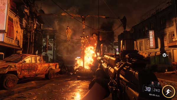 Black Ops III takes place in 2065, 40 years after the events of Black Ops II, in a world facing upheaval from climate change and new technologies. Similar to its predecessors, the story follows a group of black ops soldiers. The game’s campaign is designed to support 4-player cooperative gameplay, allowing for bigger, more open level design and less corridor shooting. As the player character is cybernetically enhanced, players have access to various special activities. The game also features a standalone Zombies mode, and a “Nightmares” mode which replaces all enemies as zombies.