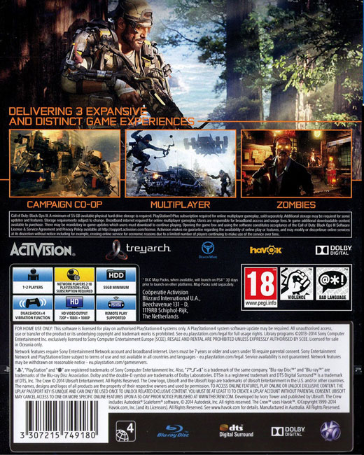 داستان بازی Call of Duty Black Ops 3 Ps4 در Black Ops 3 , می توانید تمامی کمپین های Co-Op , Multiplayer , movement system یا سیستم کنترل و حرکتی جدید و Zombies را در کنار خط داستانی جذاب تجربه کنید . Treyarch قصد دارد در بخش Co-Op Campaign , توانایی پلیر را با 4 پلیر دیگر به شکل آنلاین ترکیب کرده و تجربه جدیدی را برای گیمرها به ارمغان آورد البته طبق گفته سازندگان بازی خبری از تغییرات در زیرساخت های شبکه و سیستم های اجتماعی در بخش Multiplayer و Zombies نخواهد بود . وجود تصاویر حماسی و سینماتیک , هیجان خاصی را به بازی بخشیده است البته وجود فضاهای باز و طراحی خاص گیم پلی این امکان را به پلیر می دهد تا استراتژی های مختلف را در میدان نبرد پیاده سازی کند . در حال حاضر هر بازیکن به طور کامل قابلیت شخصی سازی دارد از سلاح گرفته تا توانایی ها و تجهیزات , تمامی این موارد در سیستم پیشرفت و زره سازی شخصی وجود دارد که تجربه ای منحصر به فرد را در مبارزات انتخاباتی برای پلیر رقم خواهد زد .