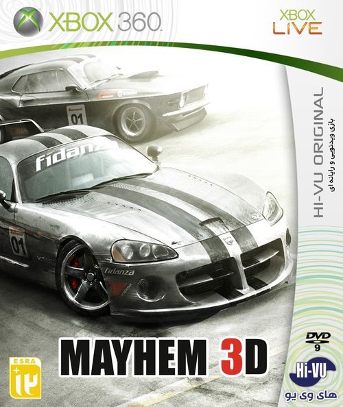 بازی MAYHEM 3D Xbox 360 یا ضرب وشتم یک بازی ویدئویی در سبک مسابقه ای است که توسط شرکت Left Field Productions توسعه یافته و به وسیله Rombax Games در مارس 2011 برای پلتفرم های پلی استیشن 3 و ایکس باکس 360 منتشر شده است. در این نسخه از بازی با انتخاب خودروی مورد نظر خود وارد دنیای بازی شوید و به مسابقه بپردازید. تنوع خودروها در بازی MAYHEM 3D Xbox 360 بسیار بالاست و تمامی خودروها تغییر یافته و برای برخوردهای شدید آماده شده اند. گرافیک و رنگ دنیای بازی به صورت تیره و روشن می باشد. خودروهای شاسی بلند با چرخ های بزرگ نیز در بازی موجود است که با پیشرفت در بازی می توانید آن را آزاد کرده و استفاده کنید. با پیشرفت در بازی MAYHEM 3D Xbox 360 می توانید میدان های مسابقه، آهنگ های پس زمینه و خودروهای قفل شده را آزاد کرده و به بازی بپردازید.