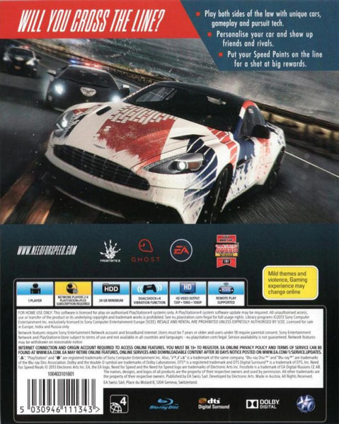 ساخت Need for Speed Rivals بر عهده شرکت تازه تأسیس Ghost Games بوده است و ظاهراً شرکت صاحبنام Criterion Games نیز به عنوان مشاور در ساخت این عنوان حضورداشته است. گیمپلی بازی بدین صورت است که برای پشت سر گذاشتن هر مرحله از بازی، نیاز به انجام یک سری کارها دارید. برای مثال برد یک مسابقه از سبک Hot Pursuit و کشیدن Drift به مقدار 1 کیلومتر. بعد از انجام این کارها باید به مخفیگاه خود بازگردید تا بعد از باز شدن اتومبیل بعدی و ارتقا یک درجه، وارد فاز بعدی شوید. رفته رفته این مراحل و کارهایی که باید انجام دهید بیشتر و سختتر میشوند و تا پایان بازی باید خود را به چنان مهارتی برسانید که بتوانید 15 دقیقه تمام، بدون دستگیری توسط پلیس و خراب شدن اتومبیلتان، مسابقه را به پایان برسانید که به هیچ وجه کار آسانی نیست و همانطور که گفته شد نیاز به تمرین بالایی دارد. در کل بازی از 60 مرحله و درجه (Level Up) تشکیل شده است (هر مرحله حکم یک درجه را دارد) که برای اتمام تمامی آنها به حداقل 15 ساعت زمان نیاز خواهید داشت. البته شایان ذکر است که بخش پلیس نیز به همین منوال است با این تفاوت که مأموریتهایی که در بخش پلیس انجام خواهید داد، برعکس کاری است که در بخش مسابقات انجام میدهید.