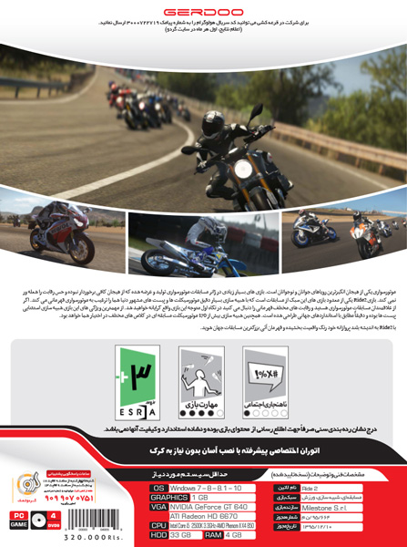 حداقل سیستم مورد نیاز بازی کامپیوتر Ride 2 گردو