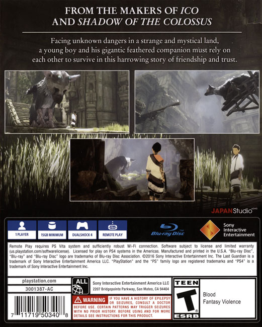 مشخصات بازی پلی استیشن 4 The Last Guardian