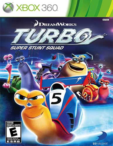 Turbo Super Stunt Squad Xbox 360 توربو: جوخه بامزه ها یک بازی ویدئویی در سبک مسابقه ای و ماجراجویی است که توسط شرکت Torus Games توسعه یافته و به وسیله D3Publisher در جولای 2013 برای پلتفرم های پلی استیشن 3، ایکس باکس 360 و مایکروسافت ویندوز منتشر شده است. بازی برگرفته شده از روی انیمیشنی با همین نام می باشد. در بازی نقش یک حلزون کوچک را به عهده دارید که بر خلاف تصور عموم این حلزون در این بازی سرعت فوق العاده بالایی دارد تا جایی که دیگر قادر به دیدنش نیستید. در این میان موانعی بسیار زیادی مانند سنگ های میان راه یا قطع شدن ناگهانی مسیر عبور و … وجود دارد که باید با پریدن و کنترل کردن حلزون آنها را پشت سر بگذارید. همچنین دوستانی دارید که در میان راه به شما کمک خواهند کرد و برخی موانع را از سر راه شما بر خواهند داشت. توربو: جوخه بامزه ها، داستانی شبیه به انیمیشن توربو دارد با این تفاوت که در بازی Turbo Super Stunt Squad Xbox 360 شما می توانید از میان چهار حلزون، بازیکن مورد علاقه خود را انتخاب کرده و با آن در مسابقات شرکت کنید.